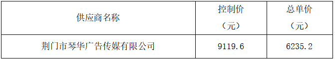 荆门市公共交通集团有限公司2024年广告开展设计制作类年度供应商采购项目进行了询价,经询价小组评审推荐,现将本次询价的成交结果公布如下: