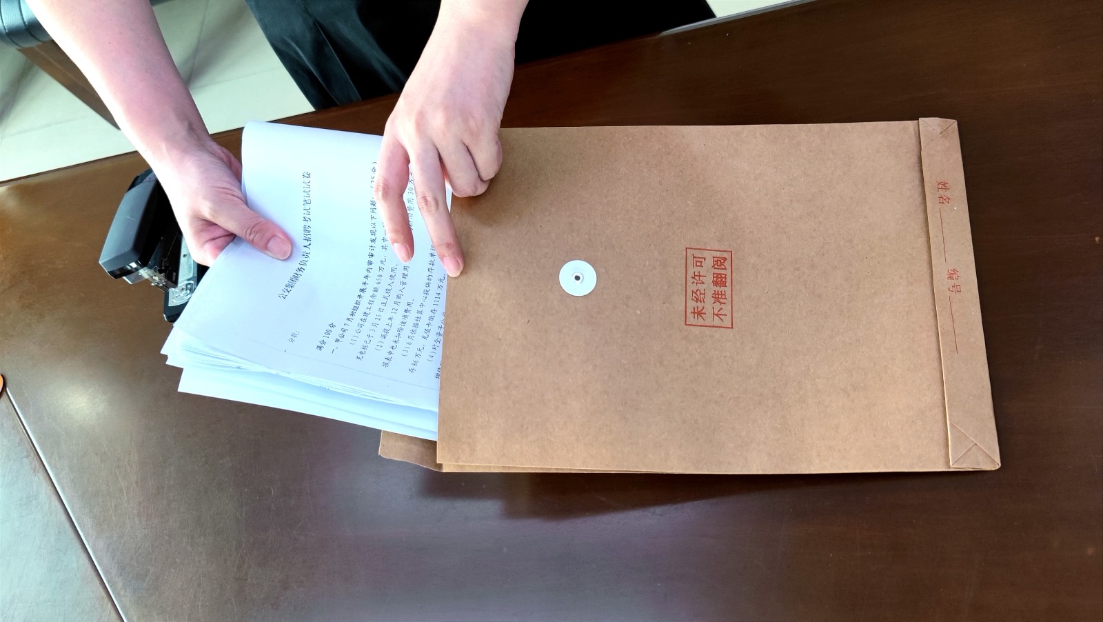 11时30分,笔试测评结束,监考员在监控下将应聘者试卷和答题卡装订密封。