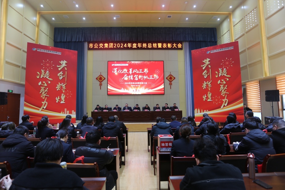 1月21日,市公交集团隆重召开2024年度总结表彰大会,市政府国资委党委委员、副主任邓兴权,市客管处党总支书记、处长刘来斌出席活动并讲话。集团党委班子、全体中层干部、一般管理人员及部分职工代表参会。会议由集团党委副书记、总经理李晓丽主持。