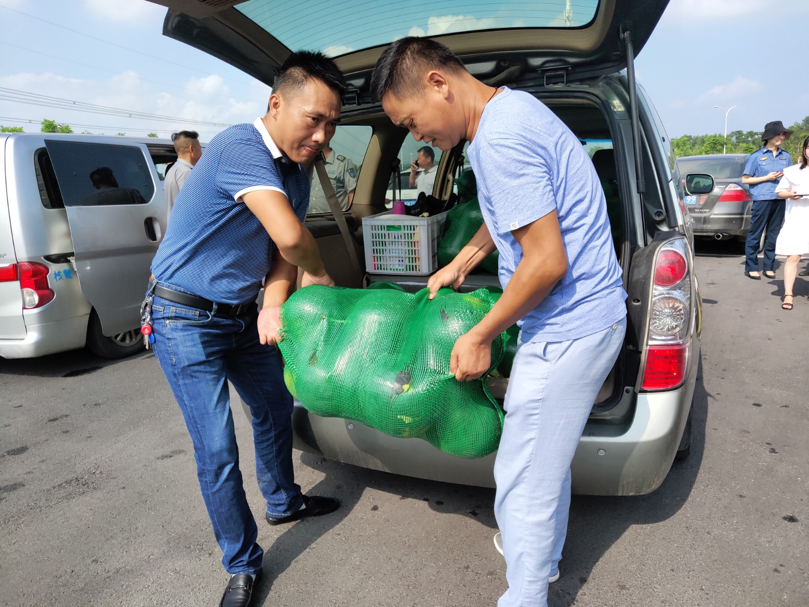 (图为 高新区·掇刀区交通运输局同志搬运清凉物资)