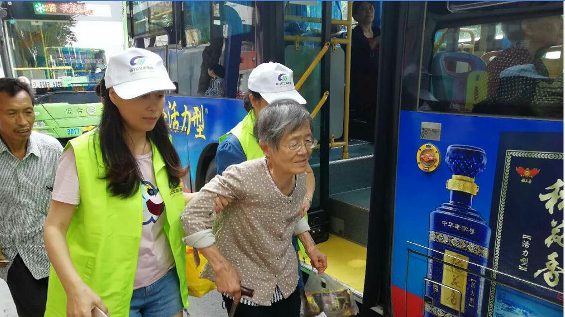 7月6日市公共交通集团有限公司组织17名公交志愿者,在城区客流量相对集中的公交站点,帮助老人及行动不便乘客提物品,上、下公交车,劝导行人走斑马线过马路,倡导市民文明乘坐公交车,如何使用过街交通灯按钮,开展“创文明城市,树和谐公交”活动。本次活动旨在落实推进全国文明城市创建工作,公交人带头营造绿色文明出行氛围,让市民形成有序乘坐公交车和通过人行天桥及斑马线过马路的习惯。当日早上8点,17名公交志愿者分为4个小组,分别在市一医、中商百货、翠竹园市场、市二医等站点及沿线斑马线处,开展引导乘客文明乘车、正确使用交通灯按钮过人行横道等志愿服务。