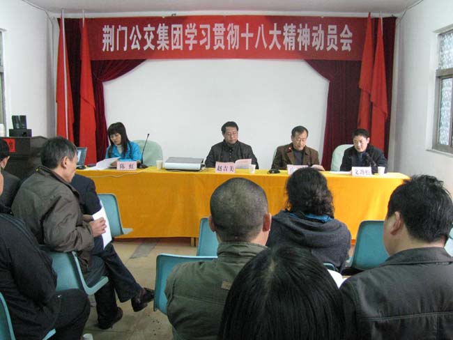 11月27日下午,荆门公共交通集团组织全体党员、中层以上领导机关干部,集中学习十八大报告,并在贯彻十八大精神的基础上,就该集团下一步学习、工作进行安排部署。 会上,与会人员认真学习了胡锦涛同志代表第十七届中央委员会所作的报告,并着重学习了其中的新表述、新思想、新论断。会议要求,全体干部职工要进一步增强自觉性和紧迫感,把学习贯彻十八大精神作为当前及今后一个时期的首要政治任务,切实学习好、领会好、贯彻好,并将11月、12月确定为集团“十八大精神集中学习月”,做到工作、学习两不误,更好地推动荆门公交创新发展、科学发展、跨越发展。大家一致表示,通过学习,今后将更加努力工作创建一流公交,让公共资源得到更加科学合理的分配,让更多老百姓受益。
