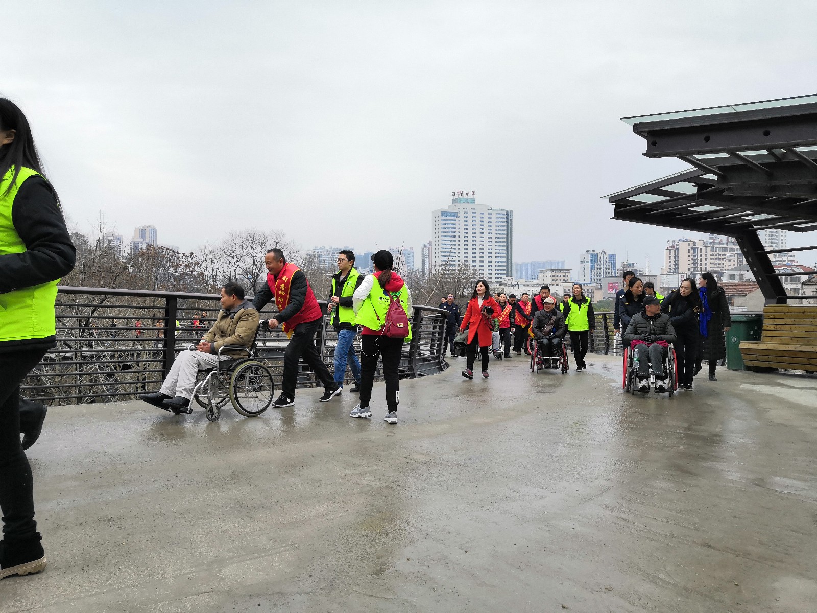 在公园新修建的盘山桥上,志愿者们推行着轮椅,与残疾朋友以新的视角欣赏着山园美景,一路上欢歌笑语。在凉亭里大家轮流着唱歌助兴,敞开心扉,诉说着心中的故事。